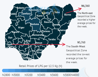 The regional variation in LPG prices across Nigeria has been a recurring feature of the Nigerian LPG industry. The South West area has the lowest rates due to its closeness to the coastal region.
