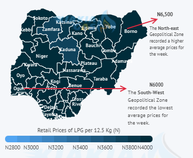The regional variation in LPG prices across Nigeria has been a recurring feature of the Nigerian LPG industry. The South West area has the lowest rates due to its closeness to the coastal region.