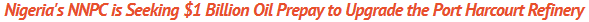Nigeria's state oil company, NNPC is in talks to collect around $1 billion in advance payments with trading companies to renovate its largest refining facility in Port Harcourt.
