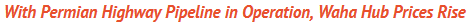 On Dec. 30, the price at the Waha Hub in West Texas, near production operations in the Permian Basin, averaged $2.42/MMBtu, which is 3 cents/MMMBtu above the price of the Henry Hub. As of Wednesday, the price, according to the EIA survey, averaged a weekly high of $2.52/MMBtu, 18 cents/MMBtu below the Henry Hub price.