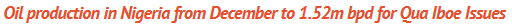 According to the Department of Petroleum Resources, the gross output of Nigeria crude oil dropped by 9 percent month on month to 1.52 million b/d, due to the hit by production problems at Qua Iboe, a leading export grade.