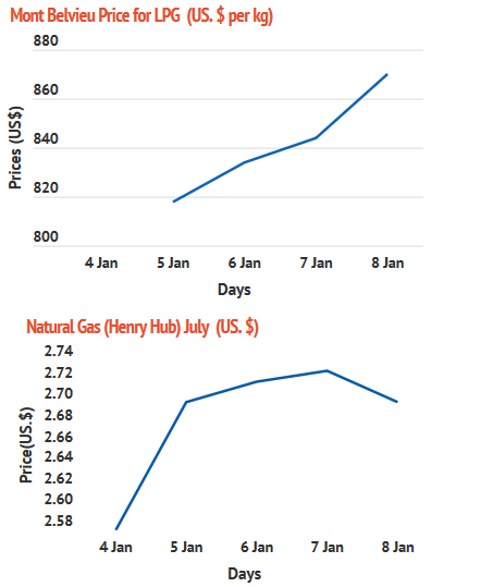 Consignments of natural gas to the U.S. According to the report that reflects data from Dec. 31 through Jan. 6, LNG export facilities, or LNG pipeline receipts, remained around the same, averaging 11.0 Bcf/d.