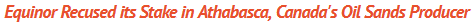 On Wednesday, Norway's Equinor said it had sold its interest in Athabasca Crude, a Canadian company that produces carbon-intensive oil sands. In 2017, Equinor, formerly named Statoil, obtained the shares as part of a deal in the Canadian province of Alberta to sell its Kai Kos Dehseh oil sands plant.