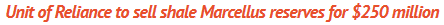 Reuters reported in line with Reliance Industries Ltd on Thursday that Reliance subsidiary would sell to Northern Oil and Gas Inc. its interest in some upstream assets in the Marcellus shale in the United States for $250 million in cash.