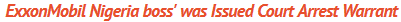 Al-Jazeera reported that an order to arrest oil chief Major ExxonMobil from Nigeria has been signed by the Federal Court in Abuja to force him to appear before investigators on anti-graft. On 29 January, the EFCC Center of Justice Okon Abang approved the order for a bench warrant. Exxon or others have not been charged with misdeeds and his investigation is pending.