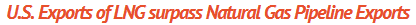 According to the U.S., monthly U.S. liquefied natural gas (LNG) exports surpassed pipeline exports of natural gas by almost 1.2 billion cubic feet per day (Bcf/d) in November 2020. Natural Gas Monthly of the Energy Information Administration (EIA). This has previously occurred only once since 1998, when LNG exports narrowly surpassed pipeline exports that month by 0.01 Bcf/d in April 2020.