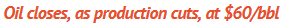 Reuters reported on Monday, oil prices rose, with Brent futures reaching $60 a barrel, fuelled by key producers' production cuts and expectations of more U.S. economic stimulus measures to raise demand.