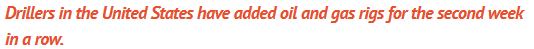 This week U.S. energy companies added a second consecutive week of oil and gas plants, with rough prices rising to a peak since 2019.